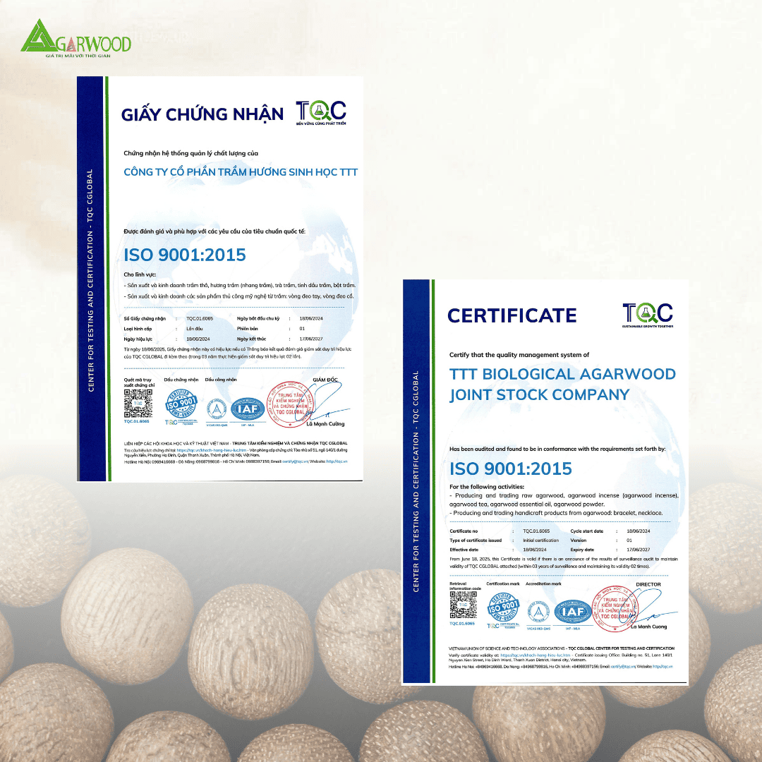 Các sản phẩm trầm hương được sản xuất và phân phối bởi Công Ty Cổ Phần Trầm Hương Sinh Học TTT tại Việt Nam. Với lợi thế kiểm soát chất lượng từ vùng nguyên liệu, TTT cam kết: