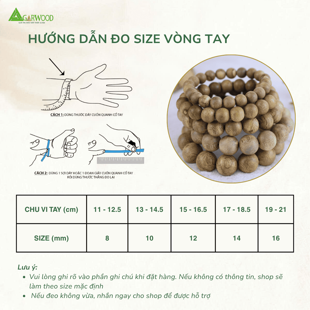 LƯU Ý: Mỗi vòng là một sản phẩm riêng biệt, vân gỗ và màu sắc giữa các hạt sẽ có sự khác biệt nhẹ do đặc tính tự nhiên của gỗ, không hoàn toàn giống với hình ảnh minh họa.