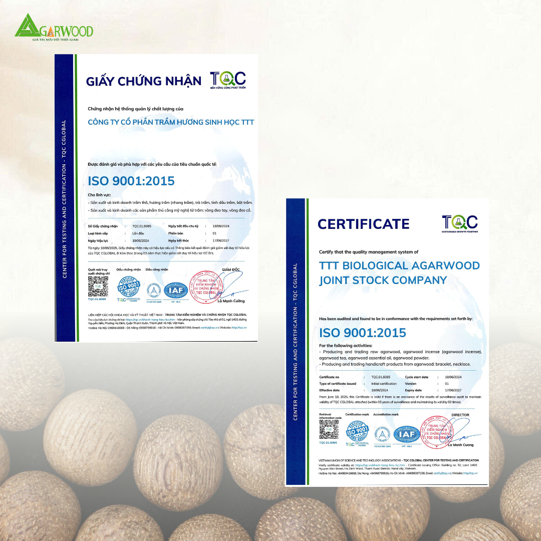 Các sản phẩm trầm hương được sản xuất và phân phối bởi Công Ty Cổ Phần Trầm Hương Sinh Học TTT tại Việt Nam. Với lợi thế kiểm soát chất lượng từ vùng nguyên liệu, TTT cam kết: