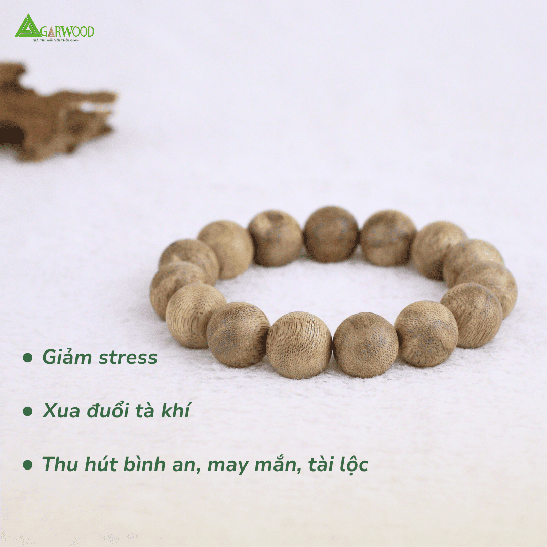 Vòng Tay Trầm Hạt Tròn 14mm Trầm Hương TTT Vân Đẹp Hỗ Trợ Xua Đuổi Tà Khí, Phong Thủy, Bình An